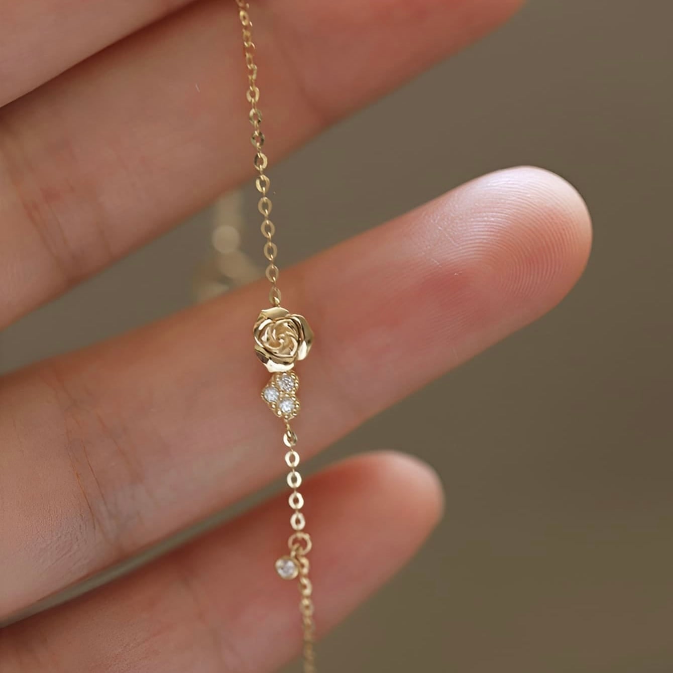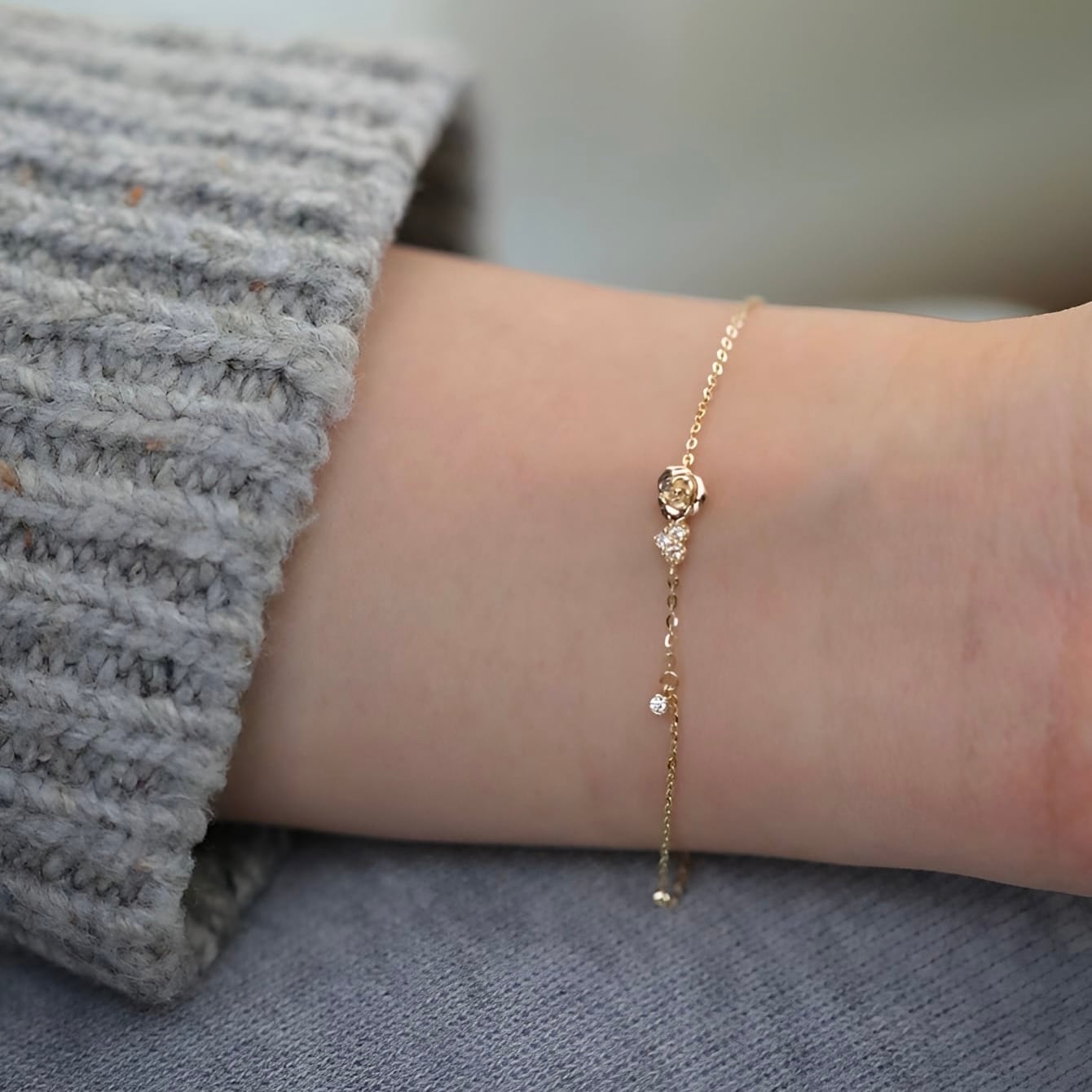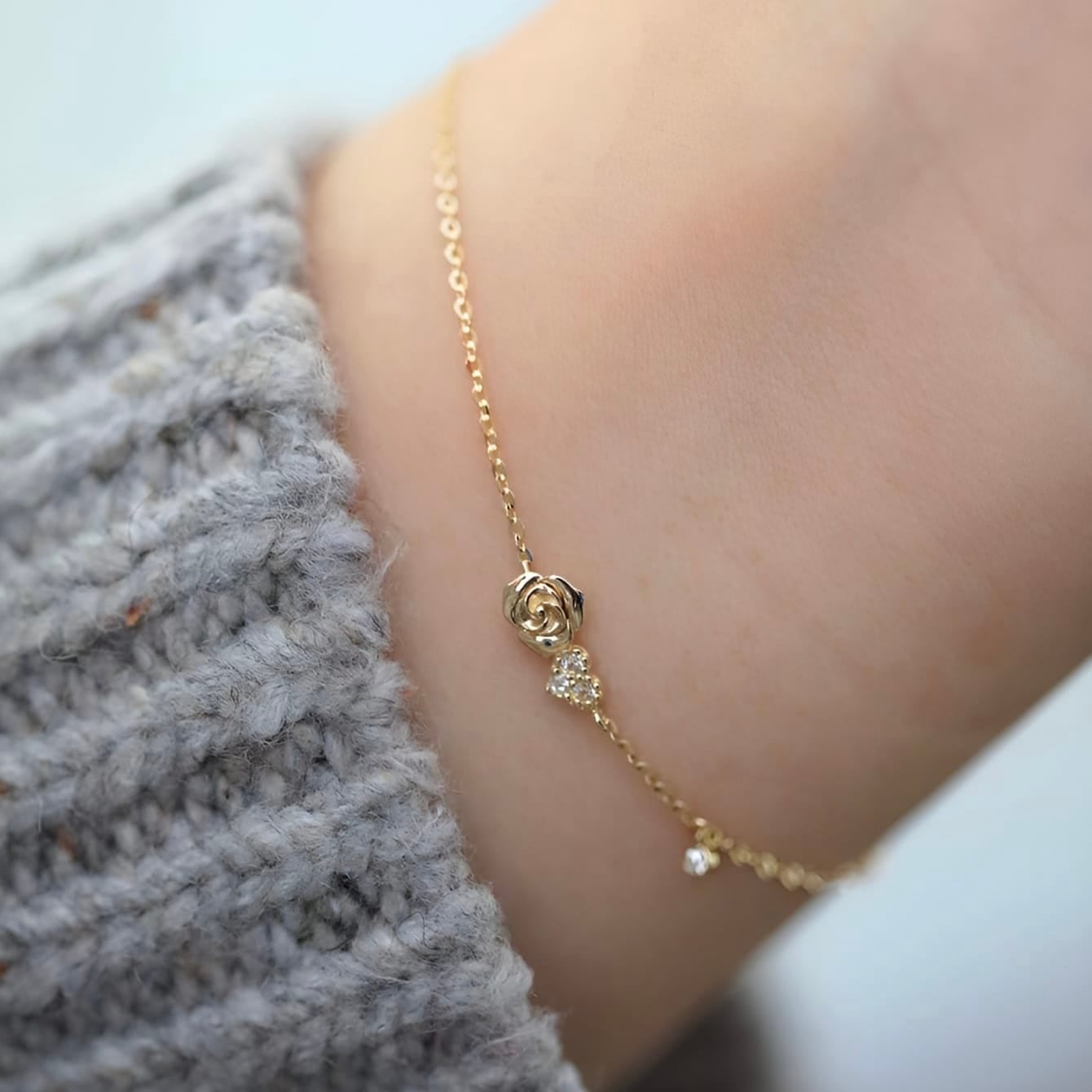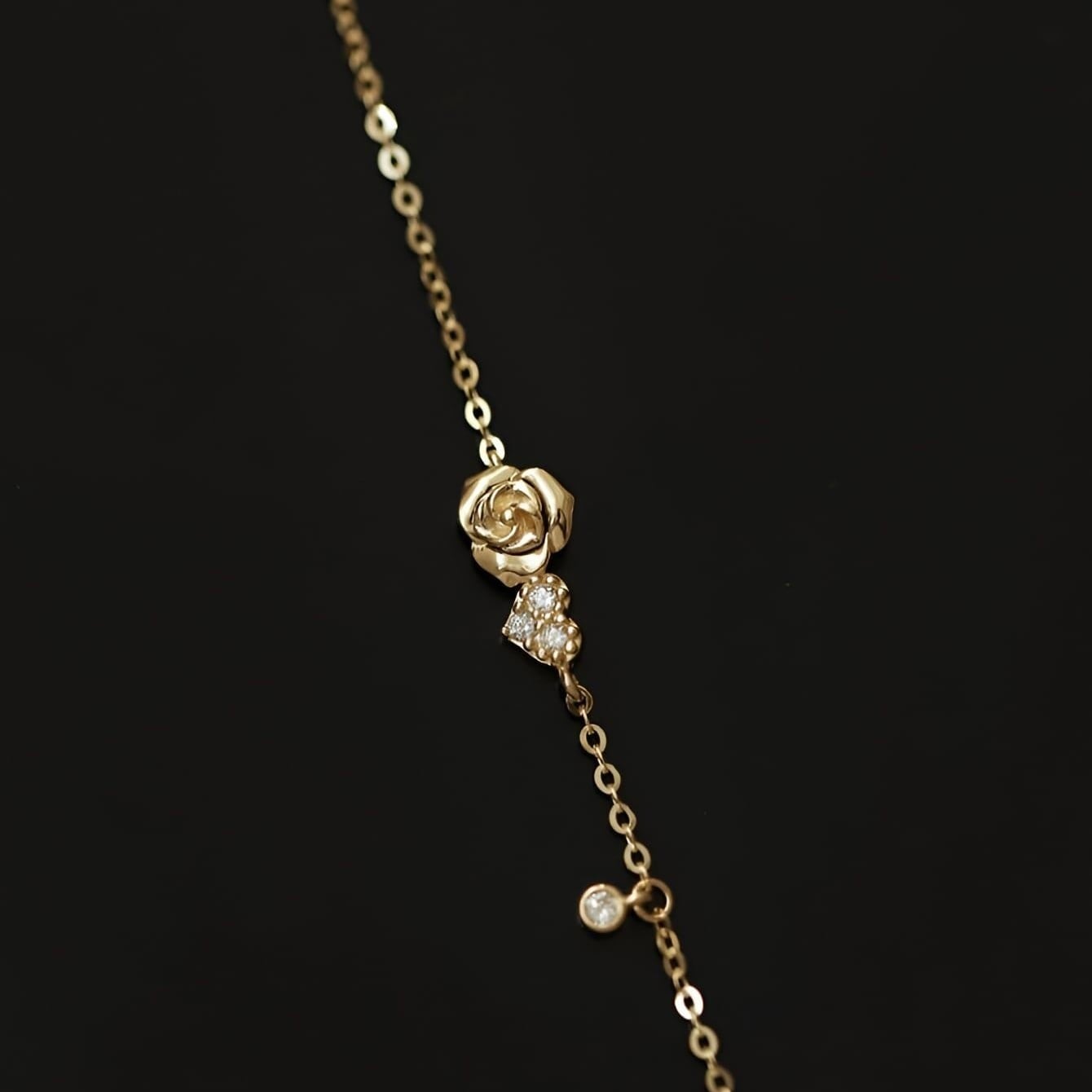 Rose Petal Bracelet(ローズペタルブレスレット) は、可憐なローズモチーフとジルコニアの輝きが魅力の、大人かわいいデザインのアイテムです。
