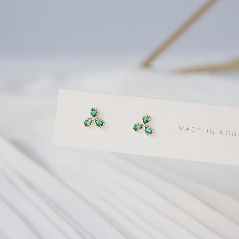 小ぶりで上品な Emerald Clover Pierce(エメラルドクローバーピアス)。