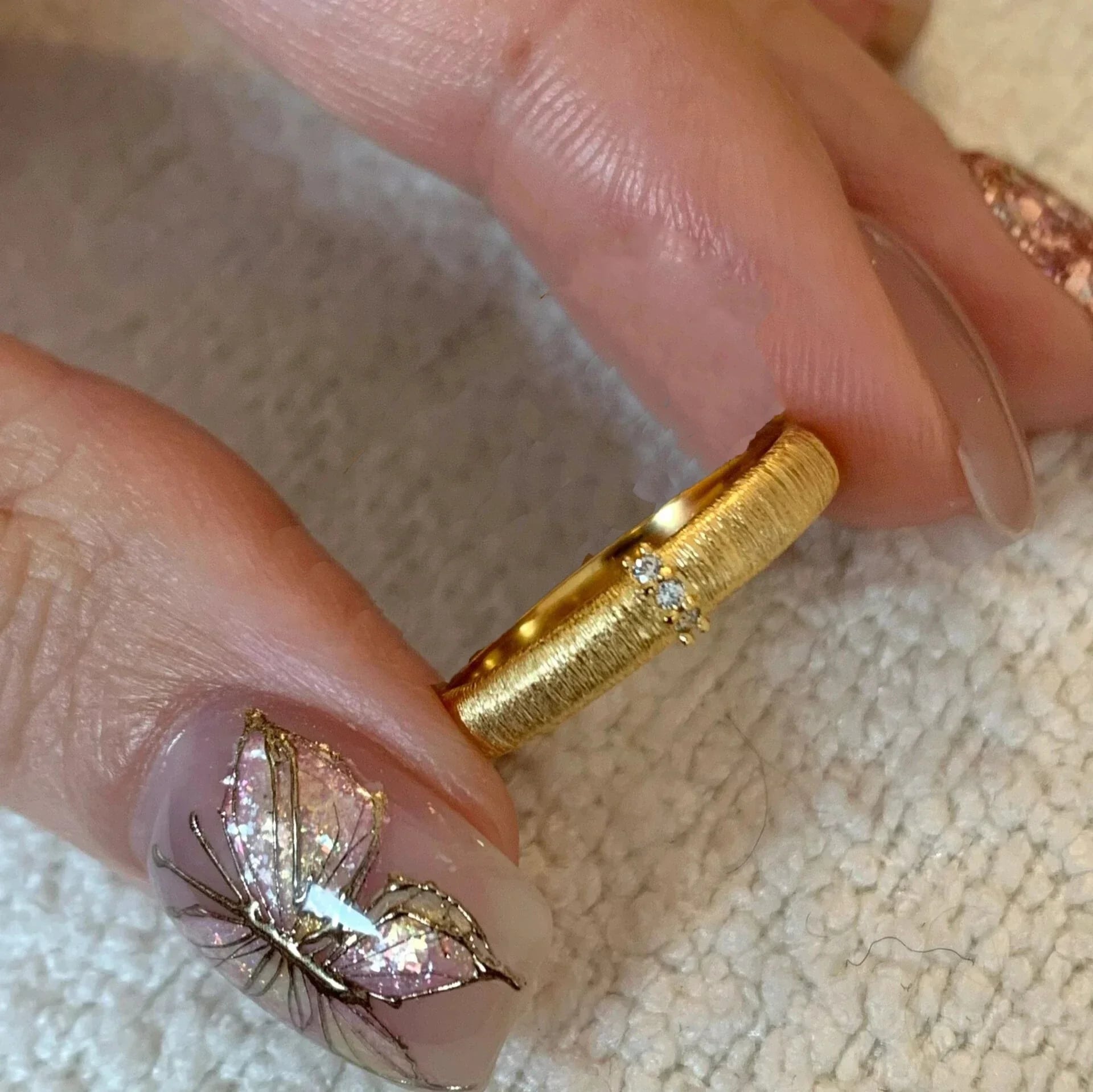 オールブラックやシンプルなニットに合わせて、中指に付けるのがおすすめ。