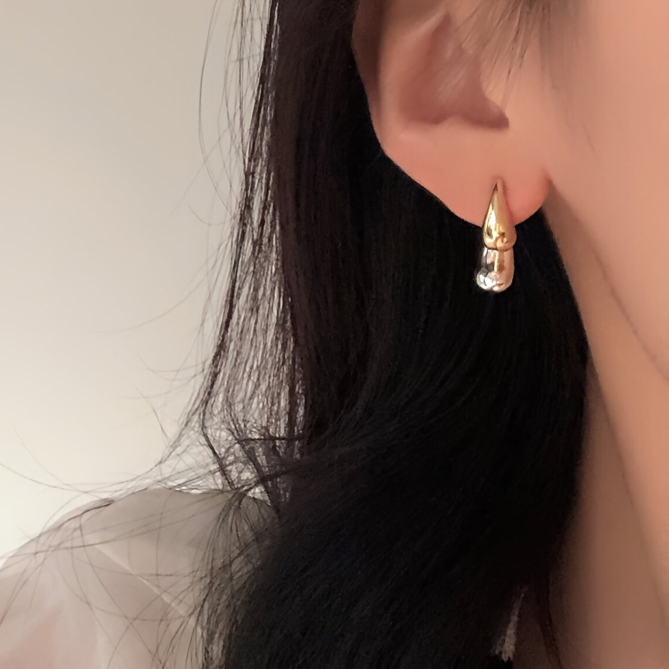 とろけるような曲線が印象的な、バイカラーデザインのピアス。