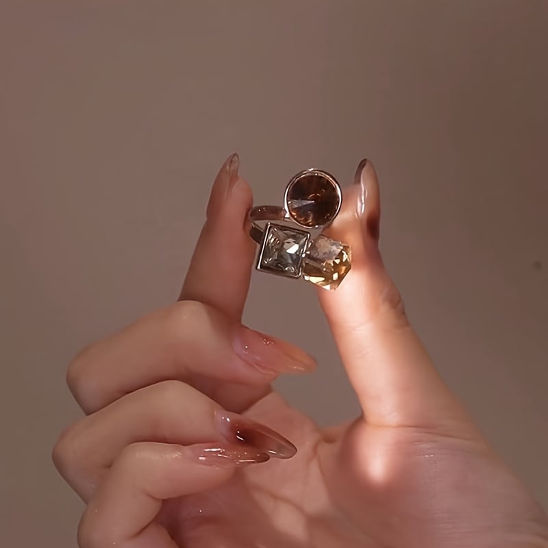 異なるシェイプのストーンを組み合わせた、立体感のあるデザインリング。