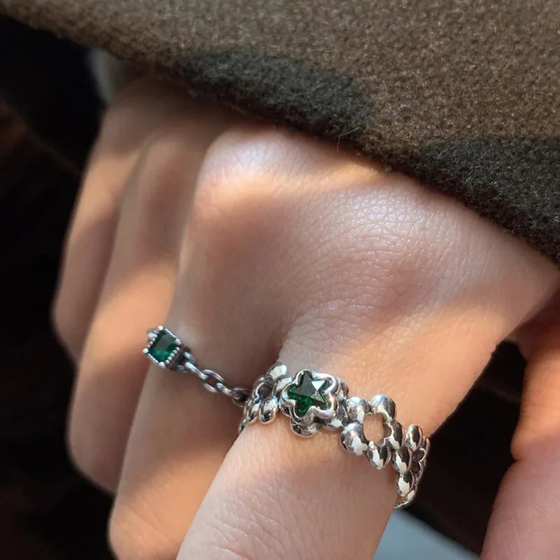 深みのあるグリーンが印象的な、アンティーク調リング。