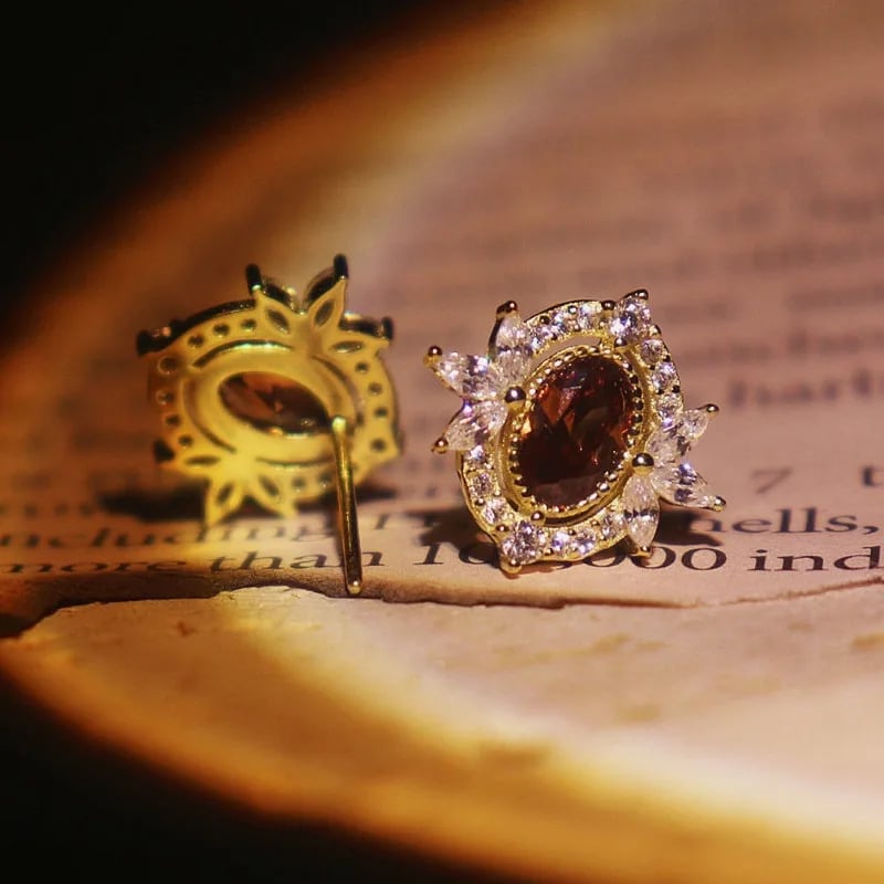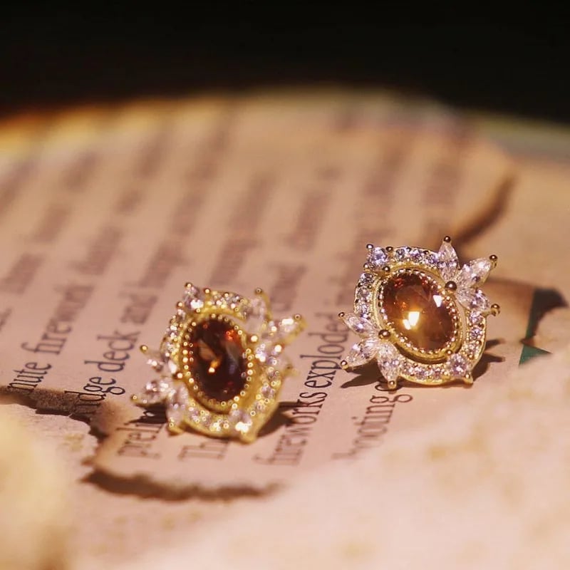 深みのあるストーンが印象的な、クラシカルなアンティークピアス。