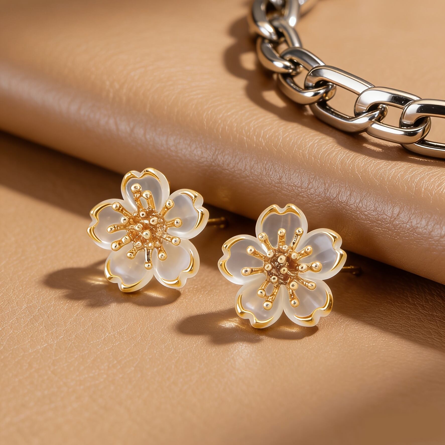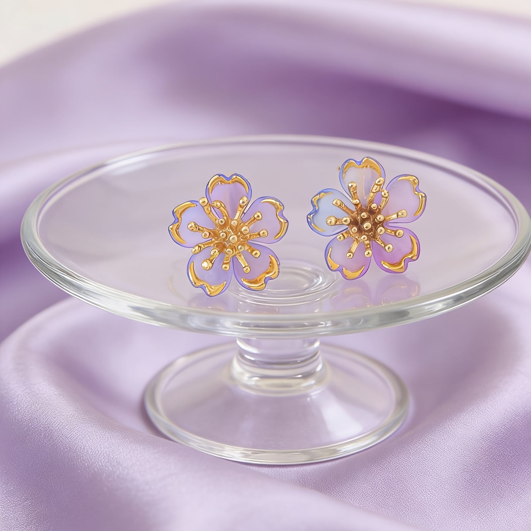 やわらかく透ける花びらが印象的な、軽やかなフラワーピアス。