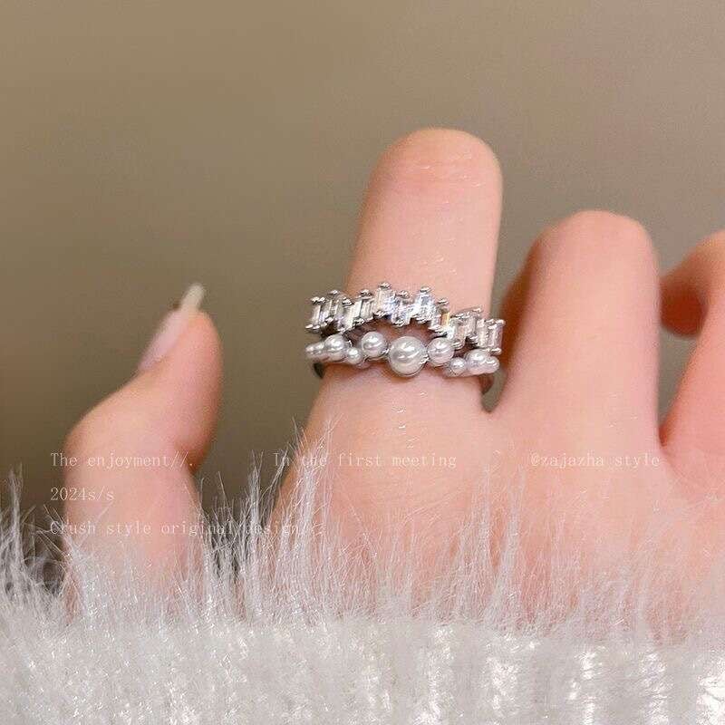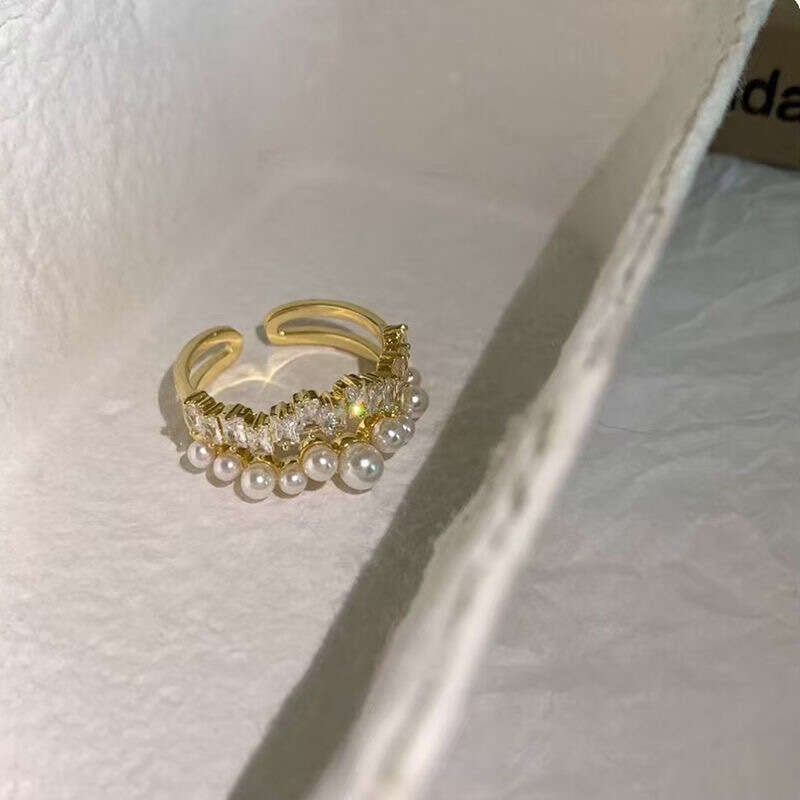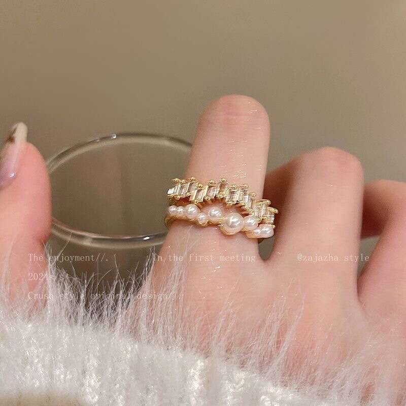 パールのやわらかな艶とストーンの輝きが重なり合う、華やかなリング。
